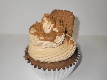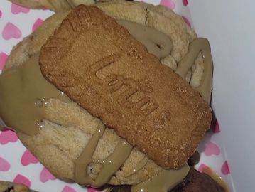 This biscoff flavored cookie is topped with cookie butter drizzle and topped with a biscoff cookie