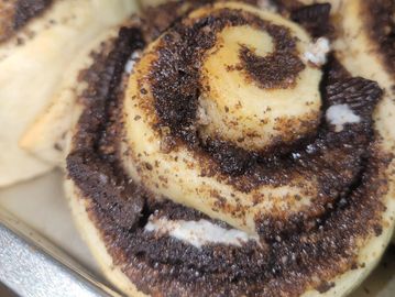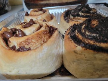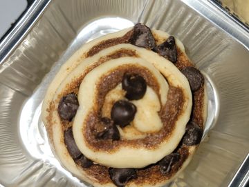 A twist on the classic cinnamon roll with sweet chocolate chips inside