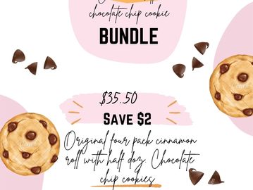 Four pack of original cinnamon rolls with half dozen chocolate chip cookies